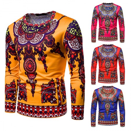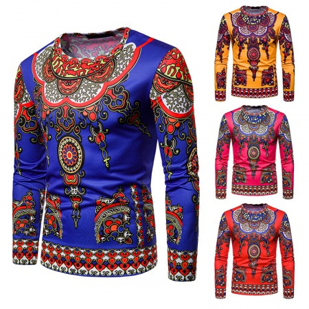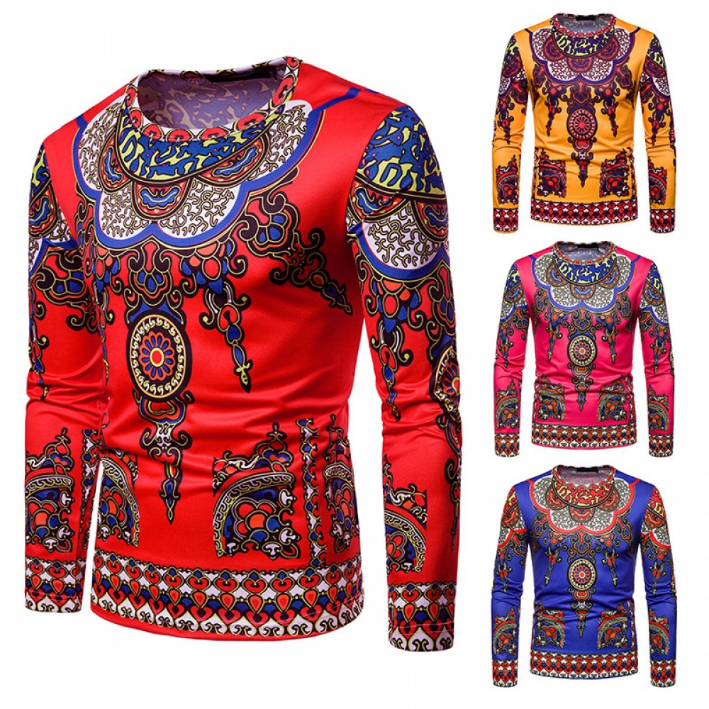 Fashion Male Creative Ethnic Style Floral 3D Printing Long-Sleeved T-Shirt
