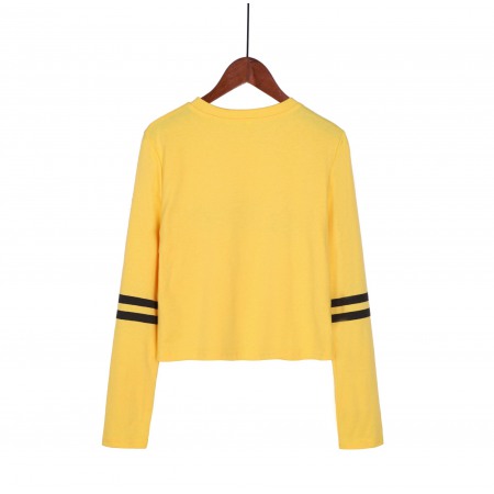 V-Neck Printing Short Long-Sleeved Multicolor T-Shirt