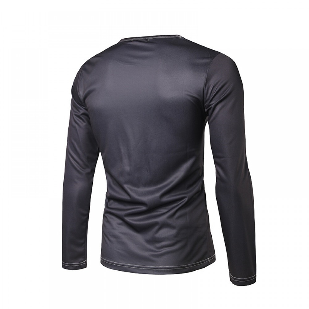 Spring New Fashion 3D Printing Men's Bow Tie Round Neck Long Sleeve T-Shirt