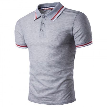 Summer New High Street Personality Cuff Striped Placket Stitching Men's Lapel Short Sleeve T-Shirt