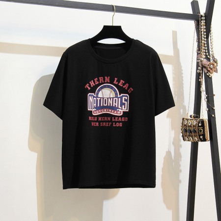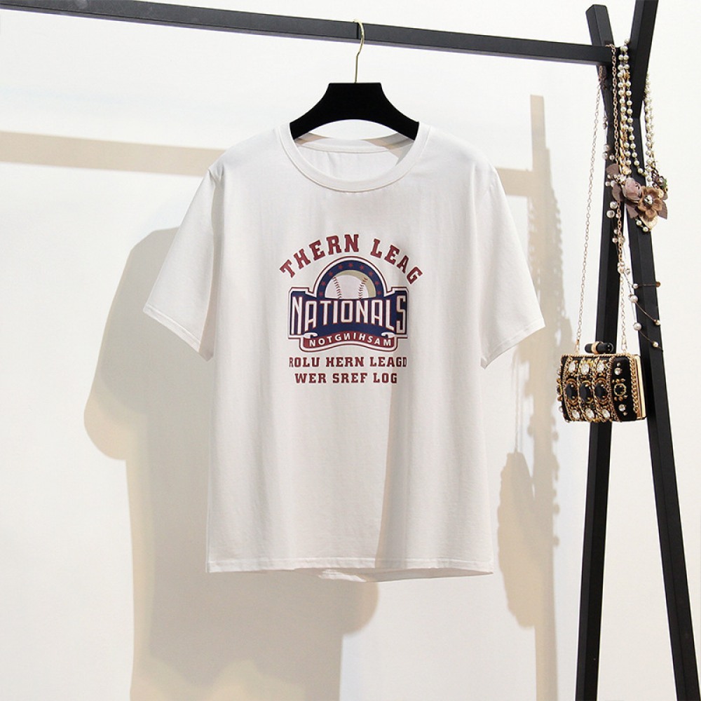 Summer Plus Size Women's New Loose and Thin and Fat Mm Extra Large Loose Print Round Neck Short Sleeve T-Shirt Women