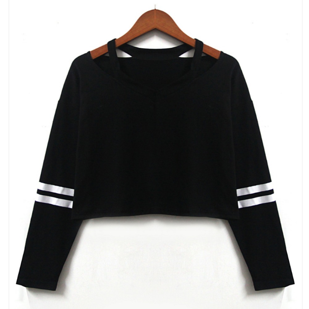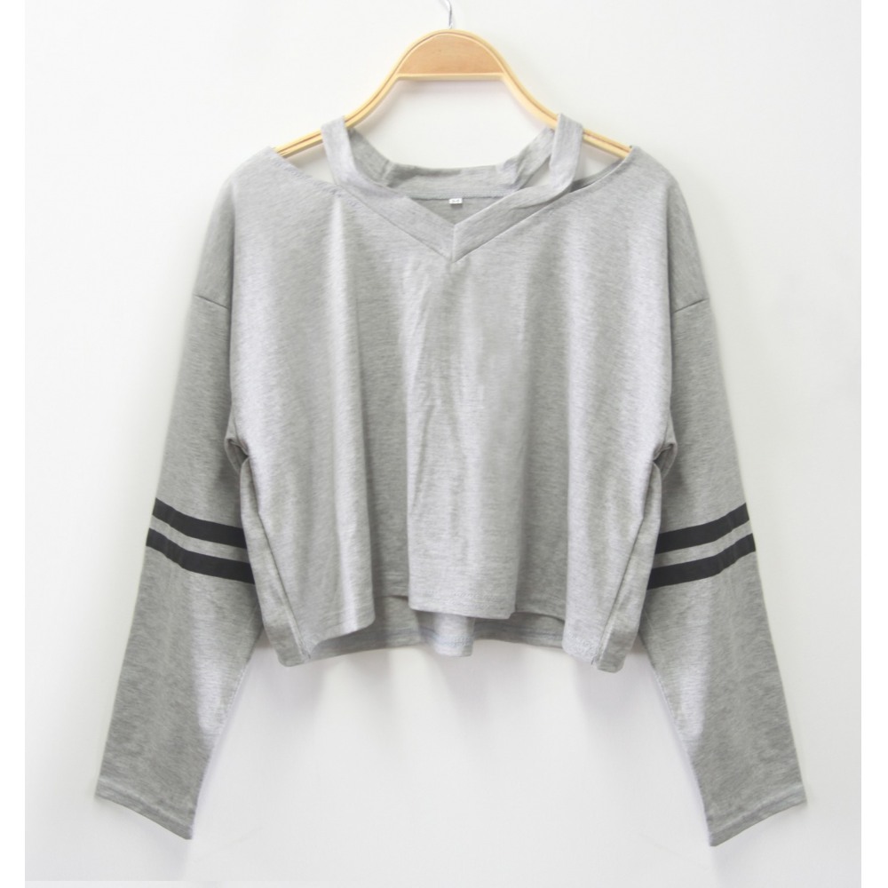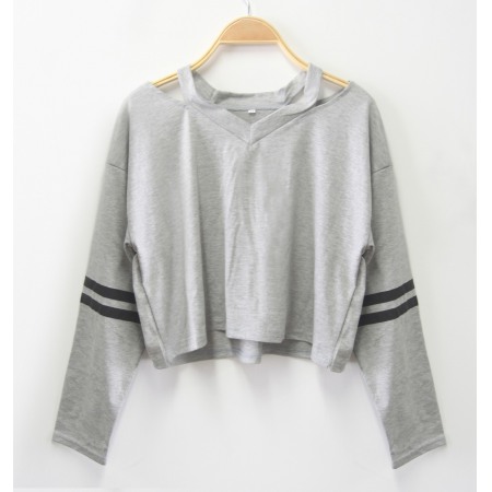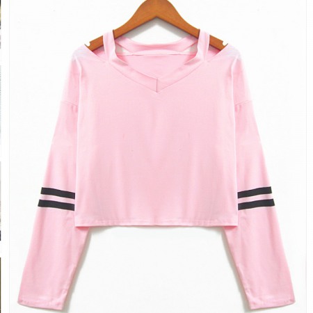 New Style V-Neck Loose Striped Long-Sleeved T-Shirt